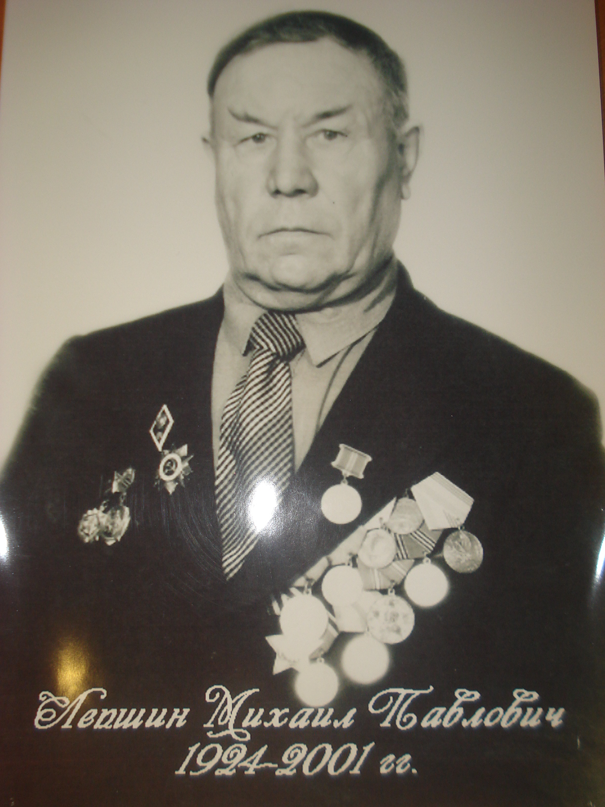 Лепшин Михаил Павлович, родился 21.11.1924г. в крестьянской семье в с. Кайбичево Дубенского района Мордовской АССР. Был старшим сыном из четверых детей. Окончив 7 классов в с. Кайбичево, продолжил школьную учебу в соседнем селе Паракино Большеберезниковского района, где отличался отличными знаниями по математике. Получив среднее образование, 17.08.1942 г. призван на службу в Советскую Армию. С 18.08.1942 г. по август С 18.08.43 г. начался боевой путь Лепшина М.П. на Курско-Орловской дуге в должности старшины 1324 стрелковой минометной роты. По 09.05.45 г. участник Великой Отечественной Войны, где встретил Победу на островах Рюгин. За боевые заслуги перед Родиной награжден: орденом Славы III степени; медалью «За отвагу»; медалью «За боевые заслуги»; медалью «За освобождение Варшавы»; медалью «За победу над Германией»; «Орденом войны I степени».